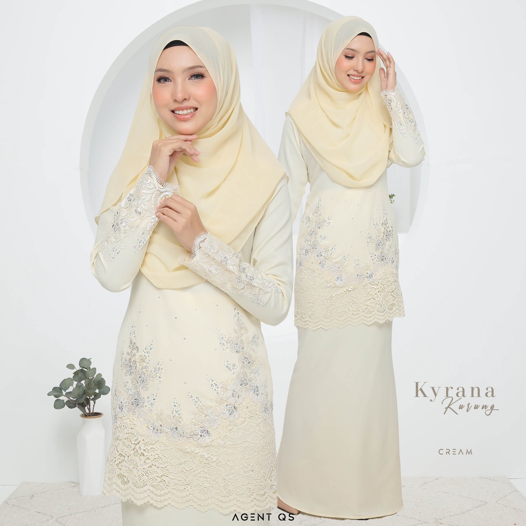 2022] arlene • baju kurung moden kebarung sulam embroidery satin baju nikah off white black gold tema klasik.